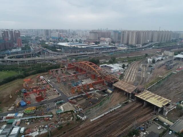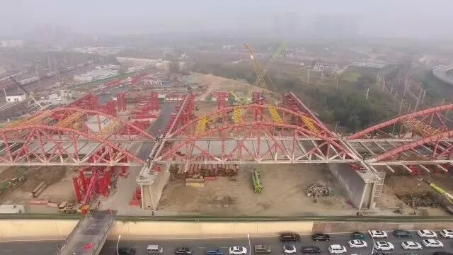 2022年6月10号,彩虹桥旧桥最后一孔122米钢桁拱完全顶推出了郑州北编组站铁路线范围。施工转入新桥建设阶段。