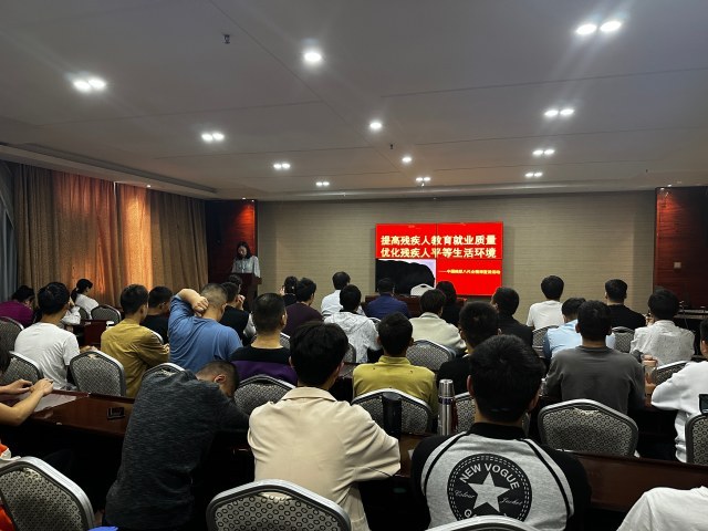 现场,中国残联第八次代表大会代表、河南省盲人协会副主席韦茜结合自身成长经历和参会感受为大家宣讲八代会精神。韦茜认为,教育、就业、平等参与三者是紧密相关,相辅相成,不可分割的整体。有了良好的教育做基础,才能有选择职业和享受工作乐趣的条件和资本,因此才能更好的融入这个社会和拥有平等参与社会的权利。“9月18日至20日,我和全省二十多位代表在北京参加了中国残联第八届全国残疾人代表大会。作为一名特殊教育工作者,我很关注会上关于特殊教育和残疾人就业的相关话题……”