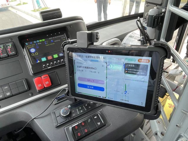 登上这辆“网约巴士”记者看到,驾驶室右侧有一小块电子屏,网约巴士驾驶员可随时查看乘客预约订单,根据后台订单接送乘客。