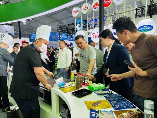 预制食材博览会上,国内外预制食材行业的知名品牌纷纷亮出自己的特色产品,河南鼎盛合国际贸易有限公司从巴西进口的预制牛排经现场烹饪,几分钟后就成为了一道鲜嫩可口的美食,参会者品尝后连连称赞。河南鼎盛合国际贸易有限公司CEO胡军军说:“我们主要是从南美进口冻品牛肉,本次邀请到了全球肉类蛋白最大供应商JBS集团总裁,来参加首届预制菜博览会。通过这样的盛会,我们能够把健康的肉类提供给更多的消费群体。”