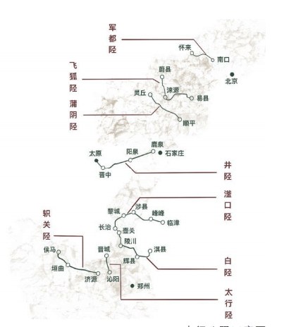 太行山脉是中国地形第二阶梯的东缘,也是山西高原与华北平原的地理分界线。山势北高南低,东陡西缓,大约 500 万年前的地质断裂活动,导致东西两侧高差达到1000-2000米,由西向东的山间激流在山之东侧造成了大量短促又陡峭的冲沟,崖壁直立,砂石堆积,无法通行。巍峨险峻的太行山脉,使得太行东西两侧难以相通,河南北上山西尤为困难。