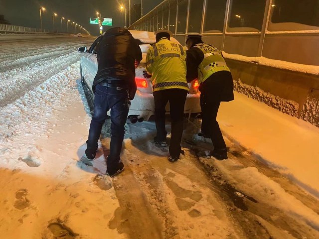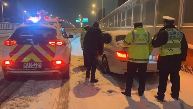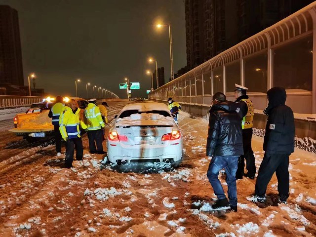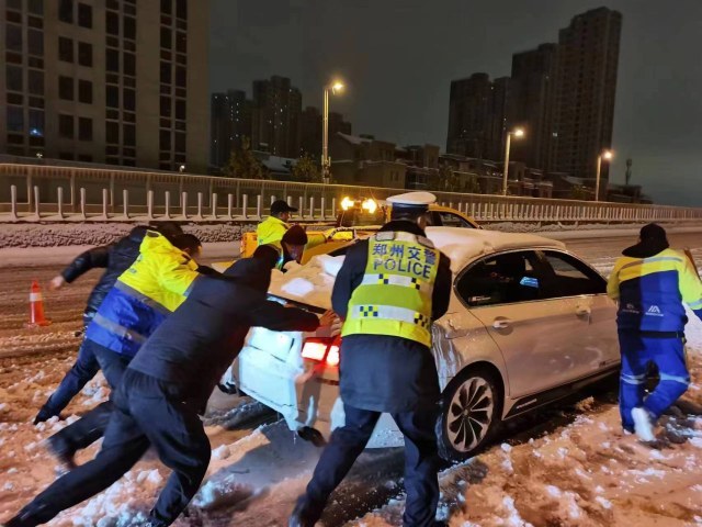 雪夜救援! 郑州交警二支队夜间帮助80多辆车脱困