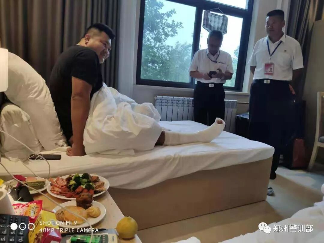 9月10日晚,参加民族大联欢的蒙古族演员特日格乐到大联欢现场排练时不慎摔伤,造成右腿骨折。训练部领导得知消息后第一时间前去探望,餐饮组把可口的饭菜送到他的床边,客房组还加派志愿者贴身陪护,膀大腰圆的小伙子,一边连声说着:饭菜太丰盛了,一边擦着眼角。