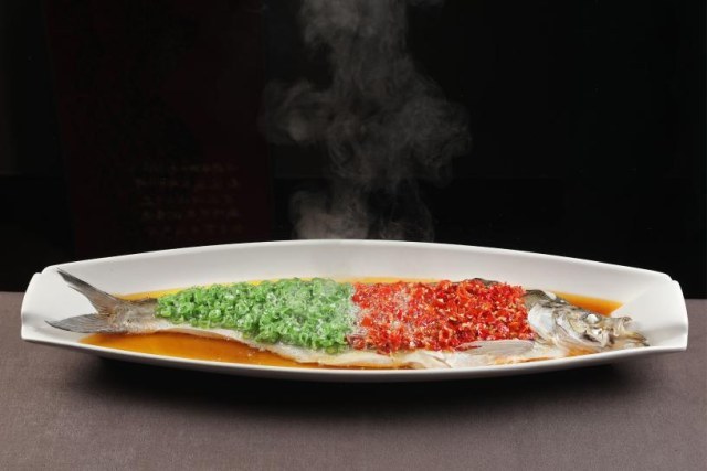 第三个三分之一,是融合创新,用河南的方法料理世界,用世界的方法启迪河南。例如阿庄的信阳黑猪肉叉烧、脆皮固始鸡,用粤菜的经典技法制作河南本土食材;河南荆芥油泼烩面,借鉴陕西油泼面的技法制作,香辣筋滑,新意十足;双椒蒸信阳翘嘴白鱼,采用湖南剁椒鱼头的做法,又融入四川青花椒,一鱼双吃;山药榴莲官燕,把河南铁棍山药、泰国金枕榴莲、印尼官燕和意大利黑醋胶囊巧妙融合,带来“国际范儿”的味觉体验……