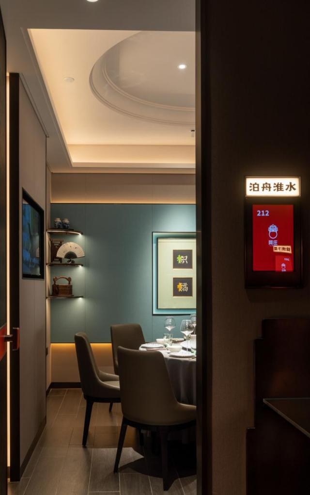 新豫菜,新环境。阿庄的店面设计,在关注细节质感和舒适感的同时,兼具美学和文化属性。例如阿庄新豫菜通泰路店,大厅中错落陈列着汝瓷、木雕等河南本土艺术品;16个包间,分别展示着河南各地的文化:礼乐商都、东京梦华、山水云台、风起洛城、千载少林……房间内随处可见河南文化的细节表达,比如“千载少林”里挂着少林武术的剪影画,摆着铸铜的功夫造型雕塑、泛黄的古籍和香炉……每个房间,都在默默讲述着河南的历史文化、人文地理、风土人情与精神气质。古韵与新声碰撞,文化融入生活,让人们在品尝豫菜之美的同时,充分感受河南的厚重文化。