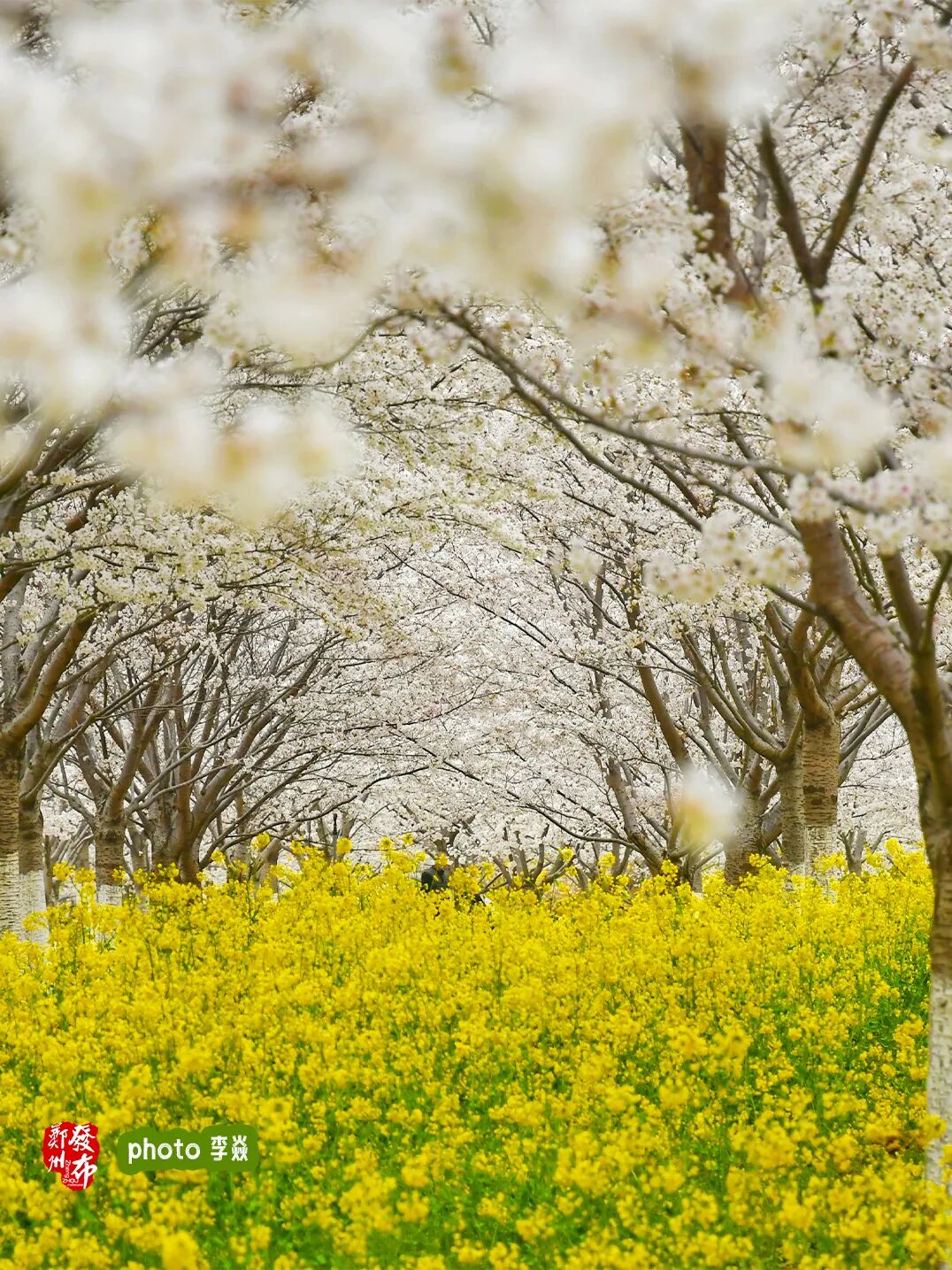 此时的荥阳古柏渡丰乐樱花园里,大片的平地、丘陵、樱花树下都有鲜艳欲滴的油菜花盛开,形成了油菜花与樱花交相辉映的美,让大家在赏樱的同时也欣赏到了漫山遍野的油菜花。大赞特赞啊!漫步在油菜花田里,空气中弥漫着浓浓的花香,放眼望去,花团锦簇、蜂飞蝶舞、与樱花遥相呼应,随手一拍即是美景!