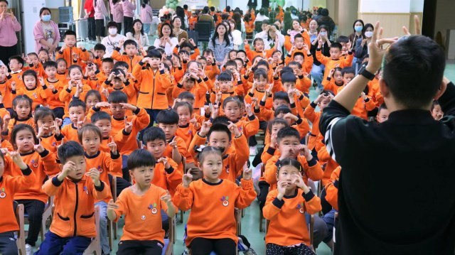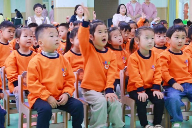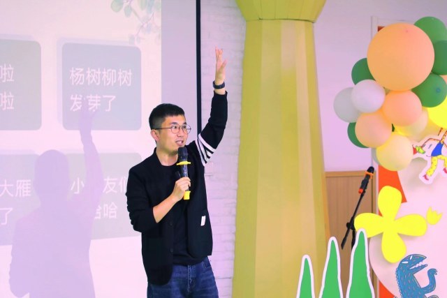 在小班小朋友们的欢声笑语和掌声中,“儿歌里的春天”活动开始。大龙通过口部操、儿歌表演等形式,将春意和童趣结合共同阅读点点书香。在中大班的课堂上,大龙通过《绝句》《咏柳》等古诗词的情景化表演,带领同学们寻找“诗词里的春天”。小朋友们热情互动,家长们纷纷举起手机拍照记录,活动现场氛围热烈。