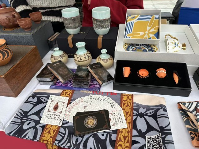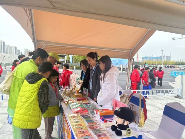 上午,记者在奥体中心5号门看到,几位身着马面裙的演员正在进行武术套路表演,一招一式气势非凡,吸引了不少市民驻足拍照。趣味十足的功夫打卡点和特色文创也格外吸睛。