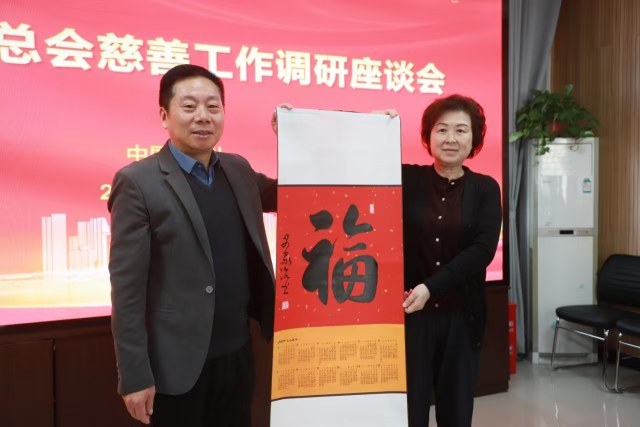 郑州慈善总会副会长王合生向郑州市第六人民医院党委书记孔维超赠送了"福"字,表达了对医院全体员工的新年祝福。