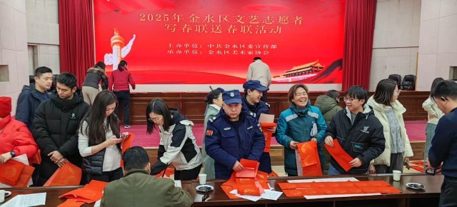 春节将至,年味渐浓。为进一步弘扬中华优秀传统文化,营造祥和喜庆的节日氛围,今天,金水区美术家协会文艺志愿者在辖区内开展免费写春联活动。