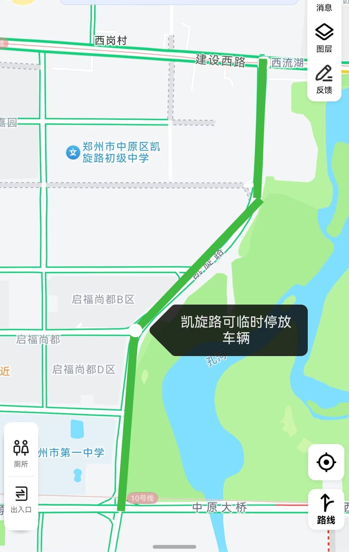 为了保障道路畅通,郑州交警二支队对中原西路、建设路西路的违停车辆开展治理行动。同时,结合西流湖公园周边实际情况,为解决游园停车需求,开辟湖西路(建设西路与湖西路向北)、凯旋路(中原西路至建设西路)为临时停车场。自即日起至5月31日,每周六周日及法定节假日的早9:00至晚20:00在不影响交通的情况下,上述道路两侧可单排有序停放,禁止停靠信号灯路口及占压导向车道。