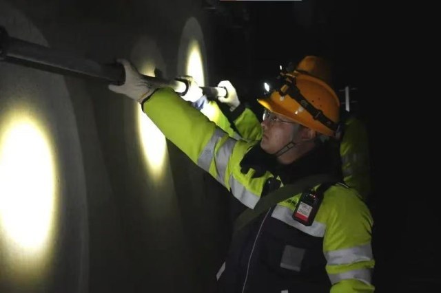 初春低温湿冷,隧道设备容易受损,列车高速经过产生的气流和震动,也可能导致漏泄电缆两端接头松动,影响数据的传输造成信号不佳。因此,“小绿人”要逐段进行检查及时发现并修复信号弱的地方,确保网络稳定畅通。
