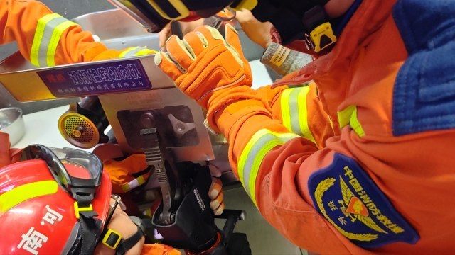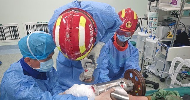 中原区消防救援大队陇海西路消防救援站迅速行动,到达现场后,消防员先用电动手锯切割,再以电动剪扩钳破拆,小心将包裹男孩手臂的钢管一分为二,随后移交医生做后续治疗。男孩称,当时自己正在擦洗设备,电机突然运转,手臂被卷入滚筒,导致手部伤势严重。