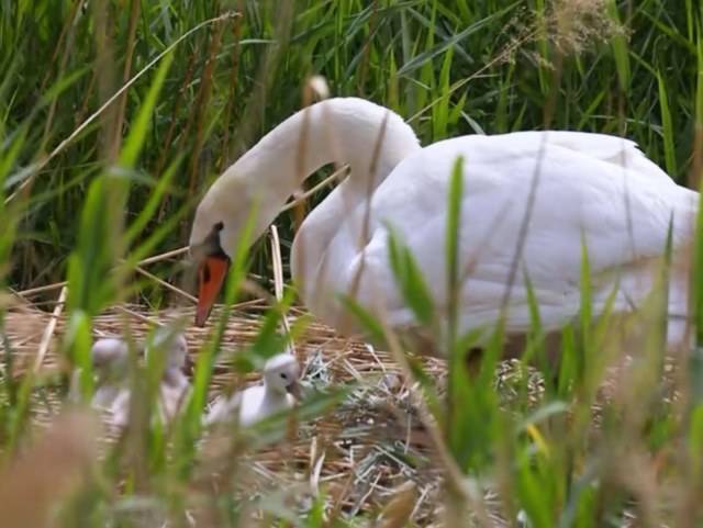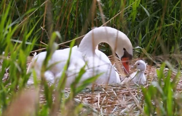 上午,记者在现场看到,5只新生的天鹅宝宝身披灰白色绒毛,依偎在父母身旁,模样十分惹人怜爱。成年天鹅则时刻保持警觉,它们不断环顾四周,并不时引颈鸣叫,以守护雏鸟的安全。郑州市惠济区林业局湿地保护中心工作人员戴刚告诉记者,疣鼻天鹅是国家二级保护野生动物,这5只雏鸟目前身体状况非常健康。它们选择在贾鲁河安家繁殖,充分证明了这里生态环境的持续改善。