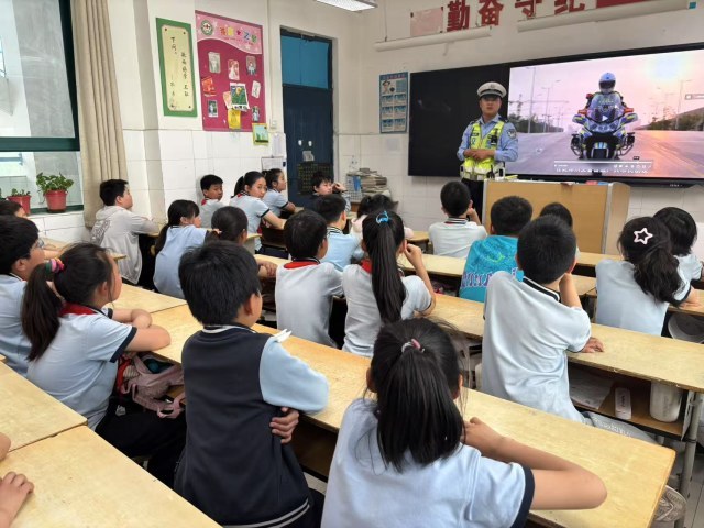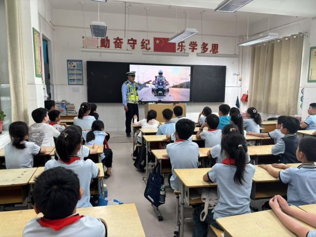 今天下午,郑州交警五支队民警走进金水区南阳路第三小学,以“交通安全伴我行”为主题开展了一场生动有趣的五一假期交通安全宣传教育活动。民警通过知识讲解、情景模拟、互动问答等形式,为师生织密节日出行“防护网”。
