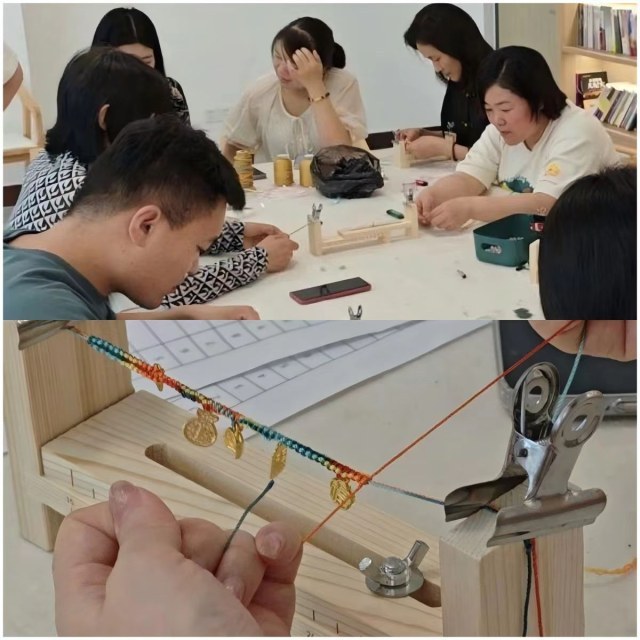 作为端午“压五毒”习俗的延伸,手绳编织区人气火爆。非遗老师教授平结、金刚结等传统编法,丝线在市民手中穿梭,化作寓意驱邪纳福的端午彩绳。“编手绳看似简单,但每一道结都蕴含着古人的智慧,戴上它感觉把端午的祝福系在了手上。”市民刘女士展示着自己完成的作品说道。不少市民还发挥创意,将琉璃珠、小铃铛等装饰编入绳中,为传统技艺增添现代元素。