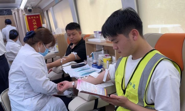 上午9点,记者在活动现场看到,几辆献血车前都排起长队,志愿者们在完成填表登记、血液初筛等准备工作后,上车捐献全血或成分血。队伍里,既有初次挽起衣袖、紧张又激动的“献血新人”,也有累计献血超百次、始终坚守公益的“献血达人”,他们用实际行动传递着温暖与大爱。