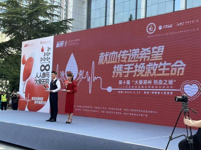 今天是世界献血者日,由河南省卫生健康委员会、河南省红十字会、共青团河南省委、中国人民解放军郑州联勤保障中心卫勤处联合主办的第十届“大爱郑州、热血之城”无偿献血主题宣传活动在河南省人民会堂举行。