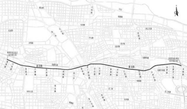 新龙路位于郑州市中心城区北部,规划为东西向城市主干路,西起健杨路,东至龙源路,道路全长约21公里,跨越高新区、惠济区、金水区及郑东新区,规划道路等级为城市主干道,双向6车道,设计车速60公里/小时,其中花园路以东段为隧道段。