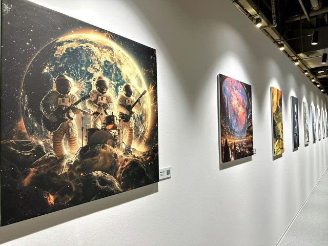 在郑州科技馆5楼展厅,现场观众参观完“AI绘画的共生探索”主题展后,正在和清华大学新闻与传播学院教授沈阳探讨AI创作的相关知识。参观学生纷纷表示:“震撼于AI生成作品的精美和广泛的想象力,AI打破了创作边界、超越想象的艺术形态,令人惊叹艺术与科技融合的无限可能,也让我对AI创新充满了期待。”“通过这次沉浸式的体验,第一次直观感受到AI不是概念性的东西,而是渗透到生活的方方面面。”