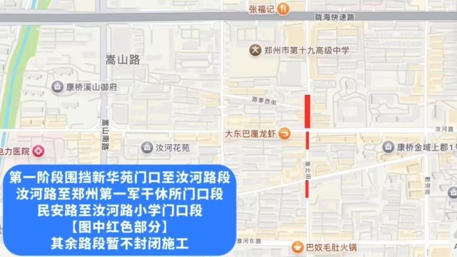 施工期间,郑州交警三支队将加大巡逻管控力度,保障附近居民群众出行安全畅通,同时,交警提醒广大交通参与者提前规划出行路线,尽量绕行周边其他路段,经过施工路段时,按照交通标志和保通人员的指挥有序通行。