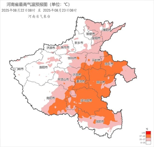 23日将是本轮高温转折关键点,随着河南一轮大范围降水的到来,高温范围将逐步向河南的东南部收缩,24日起,除南部地区外河南全省大部将暂时退出“35℃高温圈”。