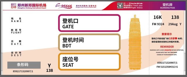 郑州机场国内航班截载时间缩短至35分钟 新版登机牌同步启用