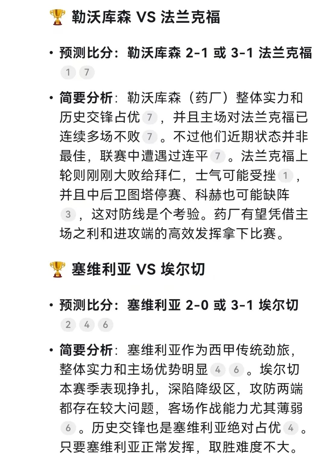 勒沃库森在阿隆索离任后,又接连失去了维尔茨和弗林蓬,这让球队的整体战斗力下降了一大截。面对状态火热的法兰克福,开局不利的勒沃库森凶多吉少。