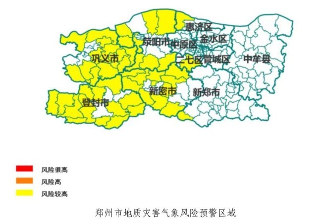 9月23日,郑州市自然资源和规划局与郑州市气象局联合发布地质灾害气象风险三级(黄色)预警。2025年9月23日20时至24日20时,郑州市地质灾害气象风险预警达到黄色预警的区域为:惠济区西部,上街区南部,二七区东南部,巩义市大部,登封市大部,新密市大部,荥阳市大部,新郑市西南部,发生地质灾害的风险较高。