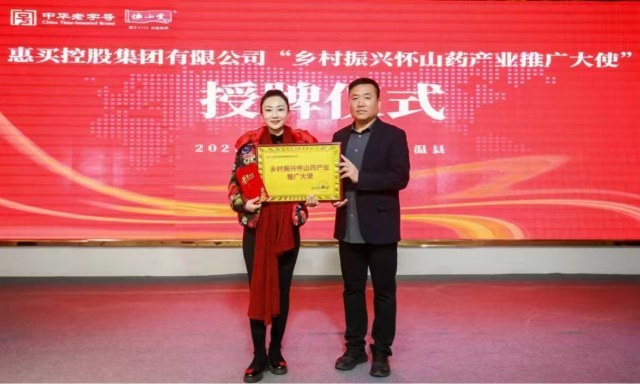 温县四大怀药协会授予惠买集团“乡村振兴怀药产业推广大使”奖牌和证书