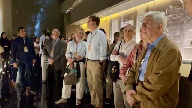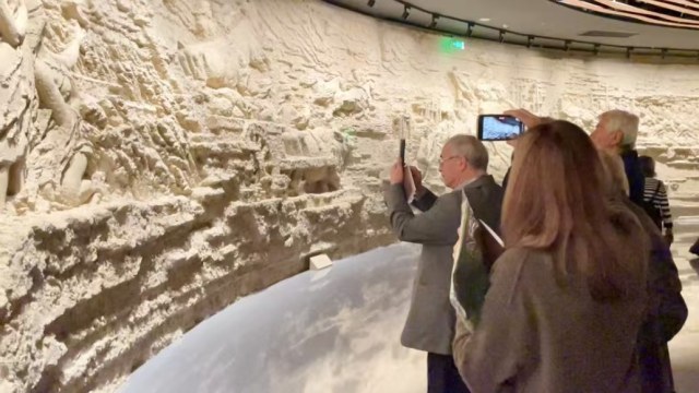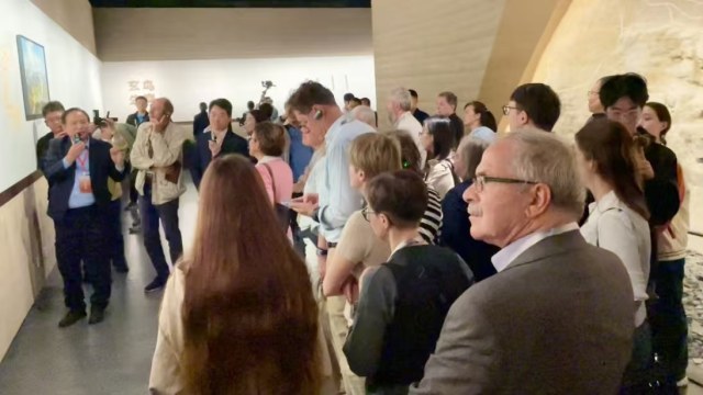 在郑州东城垣遗址博物馆,参加首届世界古典学大会·走读中国之中原行活动的嘉宾们认真观看了城墙遗址和众多珍贵文物,当了解到这处城墙遗址历经3600年的时光,在郑州城市更新与历史文化保护传承的有机融合下,焕发出新的生机和活力,很多嘉宾都感到不可思议。